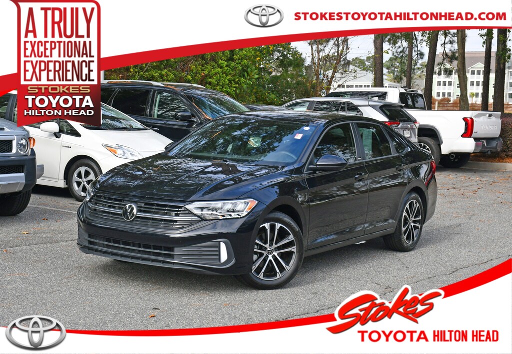 ***Stokes Toyota Hilton Head*** 2023 Volkswagen Jetta 1.5T Sport in Deep Black Pearl, Factory Equipped With: Power Windows, Power Locks, Cruise Control, Remote Keyless Entry, Integrated Back Up Camera, 4 Speakers, ABS brakes, Air Conditioning, AM/FM radio, Brake assist, Bumpers: body-color, Cloth Seat Trim, Dual front impact airbags, Dual front side impact airbags, Electronic Stability Control, Front Bucket Seats, Heated door mirrors, Low tire pressure warning, Panic alarm, Power door mirrors, Power steering, Rear window defroster, Speed control, Steering wheel mounted audio controls, Tilt steering wheel, Trip computer, Variably intermittent wipers, Wheels: 17" 2-Tone Machined Alloy. CARFAX One-Owner. Clean CARFAX.