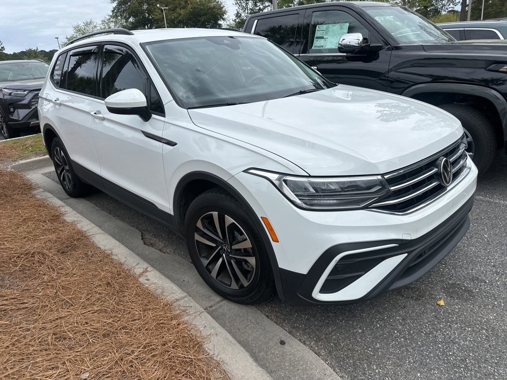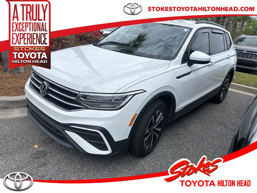***Stokes Toyota Hilton Head*** 2023 Volkswagen Tiguan 2.0T S in Opal White Pearl, Factory Equipped With: Power Windows, Power Locks, Cruise Control, Remote Keyless Entry, Integrated Back Up Camera, 6 Speakers, ABS brakes, Air Conditioning, Alloy wheels, Brake assist, Bumpers: body-color, Compass, Front Bucket Seats, Heated door mirrors, Low tire pressure warning, Panic alarm, Power steering, Power windows, Rear window wiper, Tilt steering wheel, Trip computer, Variably intermittent wipers. CARFAX One-Owner. Professionally Serviced and Detailed for your Peace of Mind. CALL US TODAY FOR MORE DETAILS OR TO SCHEDULE A TEST DRIVE AT 843.815.0240 OR VISIT US ON THE WEB AT WWW.STOKESTOYOTAHILTONHEAD.COM OR VISIT US AT 100 FORDING ISLAND ROAD, BLUFFTON SC 29910.